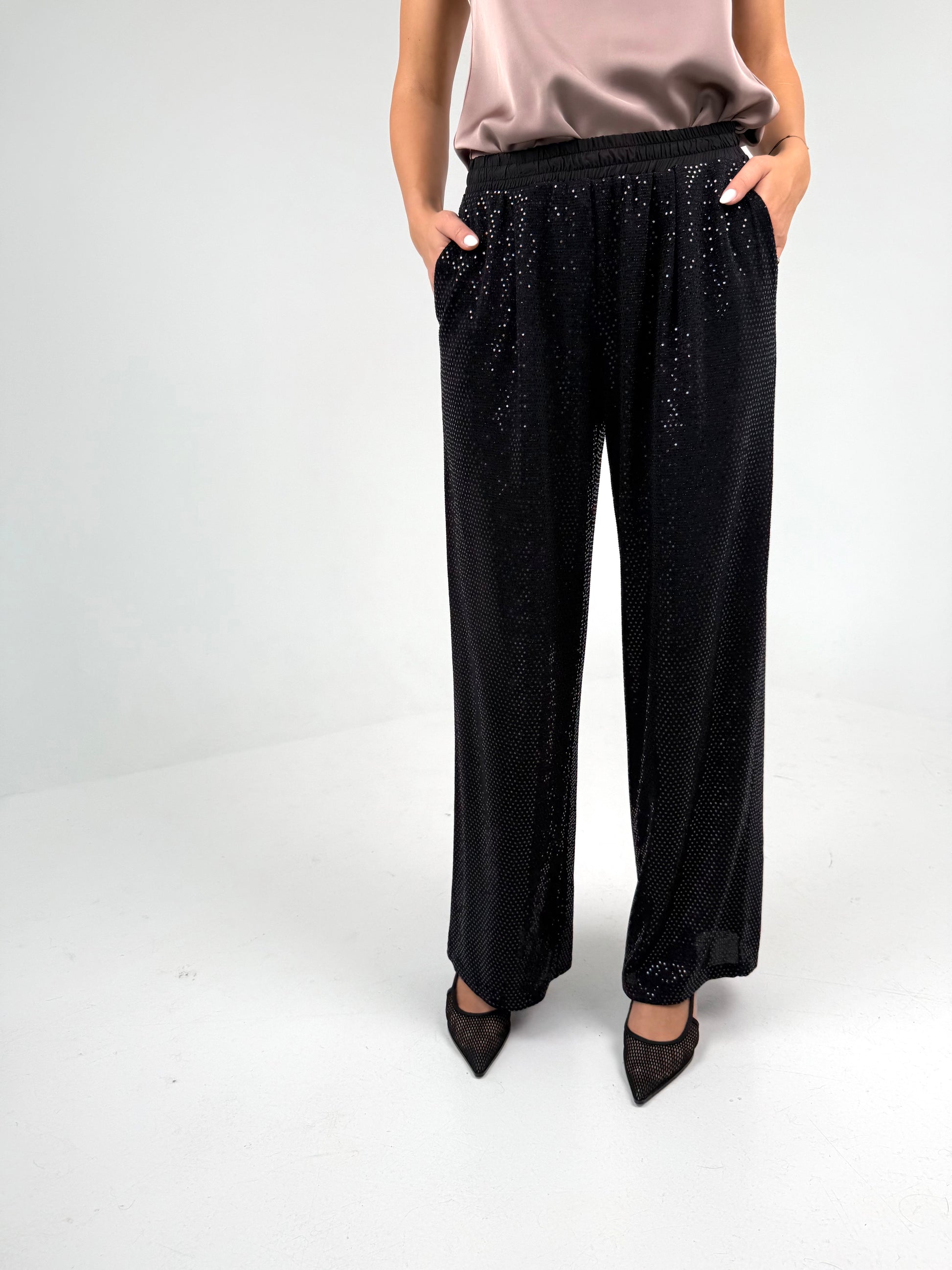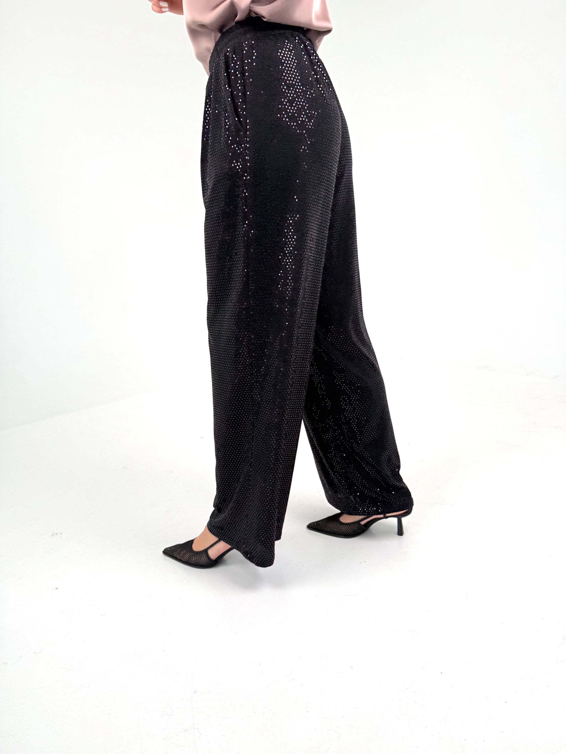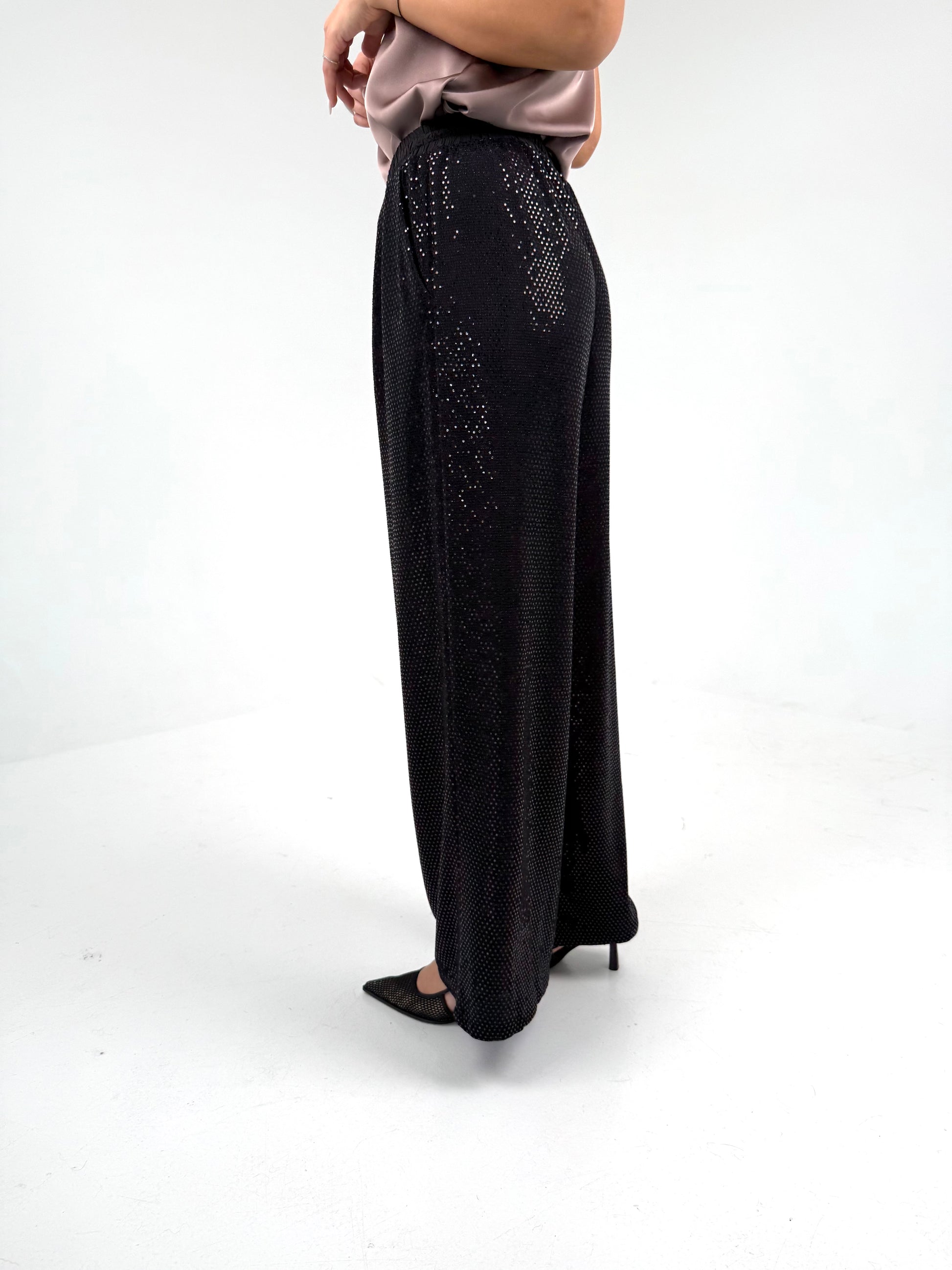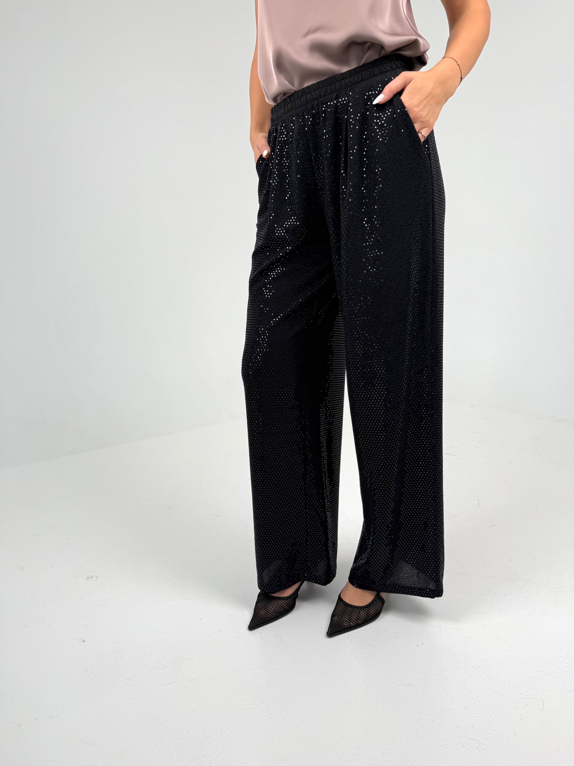 Audinio bazė - juodos spalvos nestoras trikotažas, kuris labai jaukus, švelnus prie kūno. Išorė dengta juodais blizgiais burbuliukais.