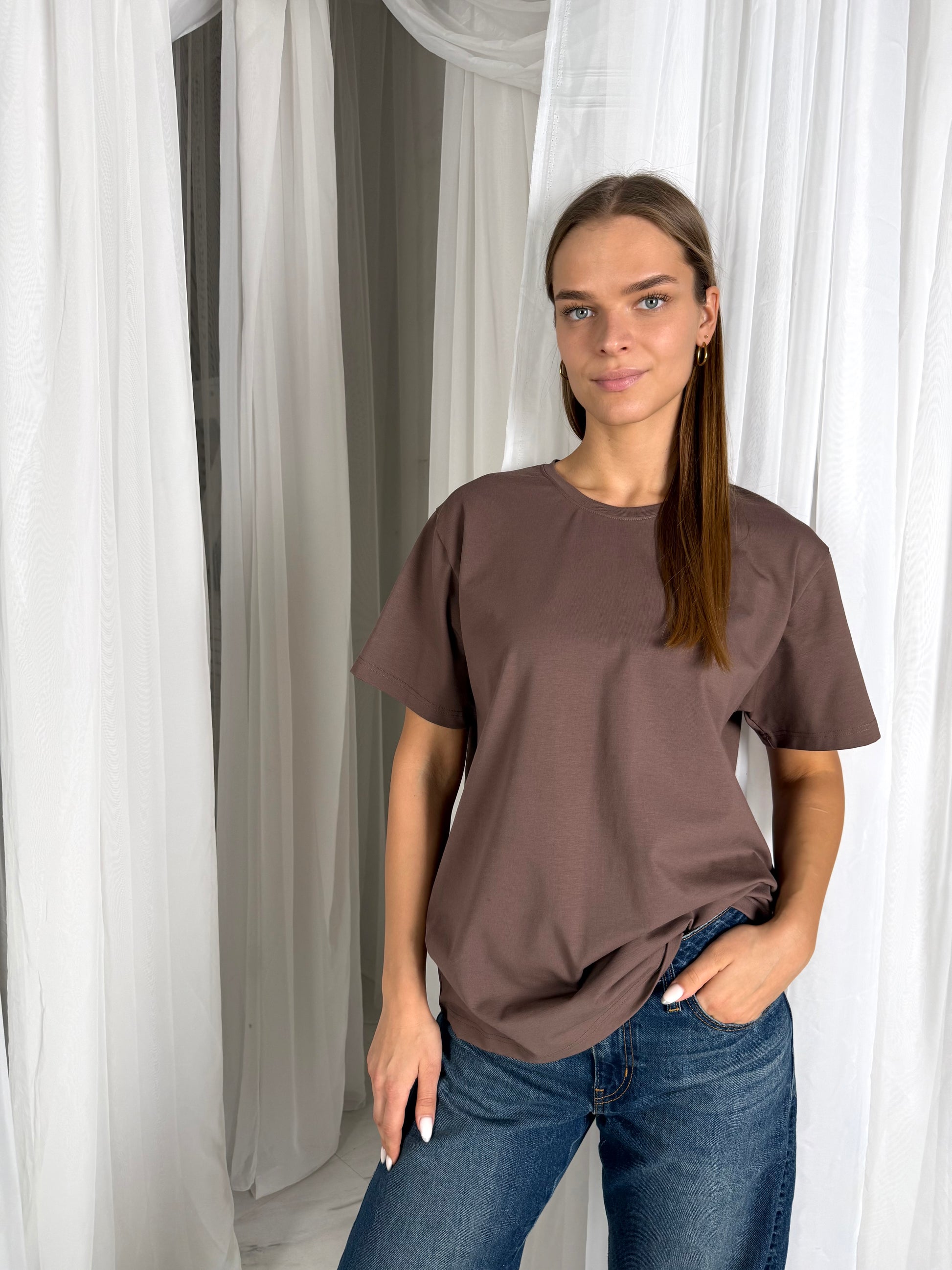 Basic marškinėliai yra oversize modelio, laisvo kritimo, pailginti. Tekstilė naudojama ne paprasta - tokios paprastai parduotuvėje nerasi. Ji tvirtesnė nei esame pratę, todėl nepraranda formos, neišsitąso, nenusiskalbia.