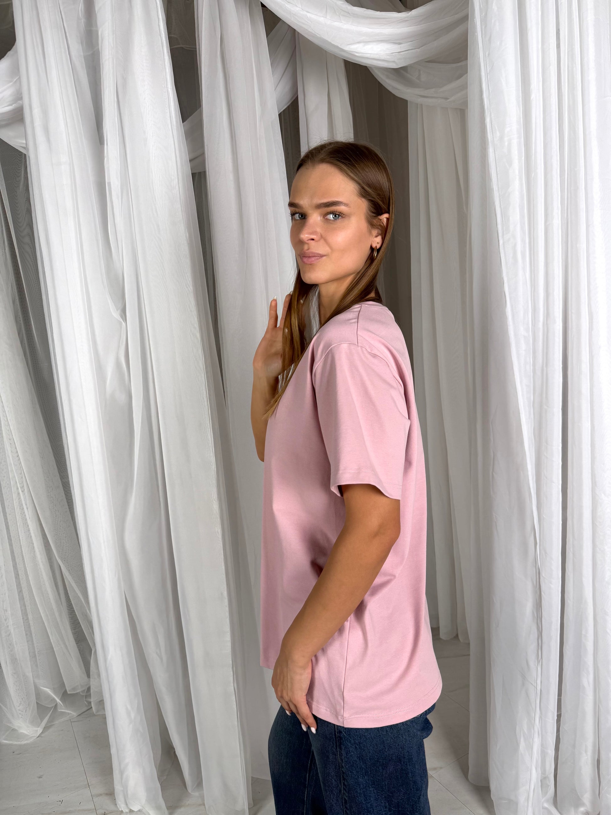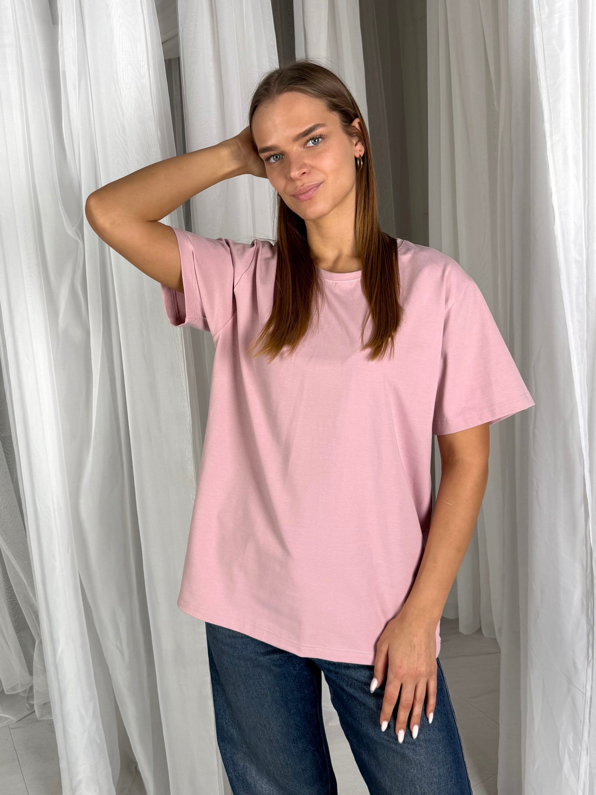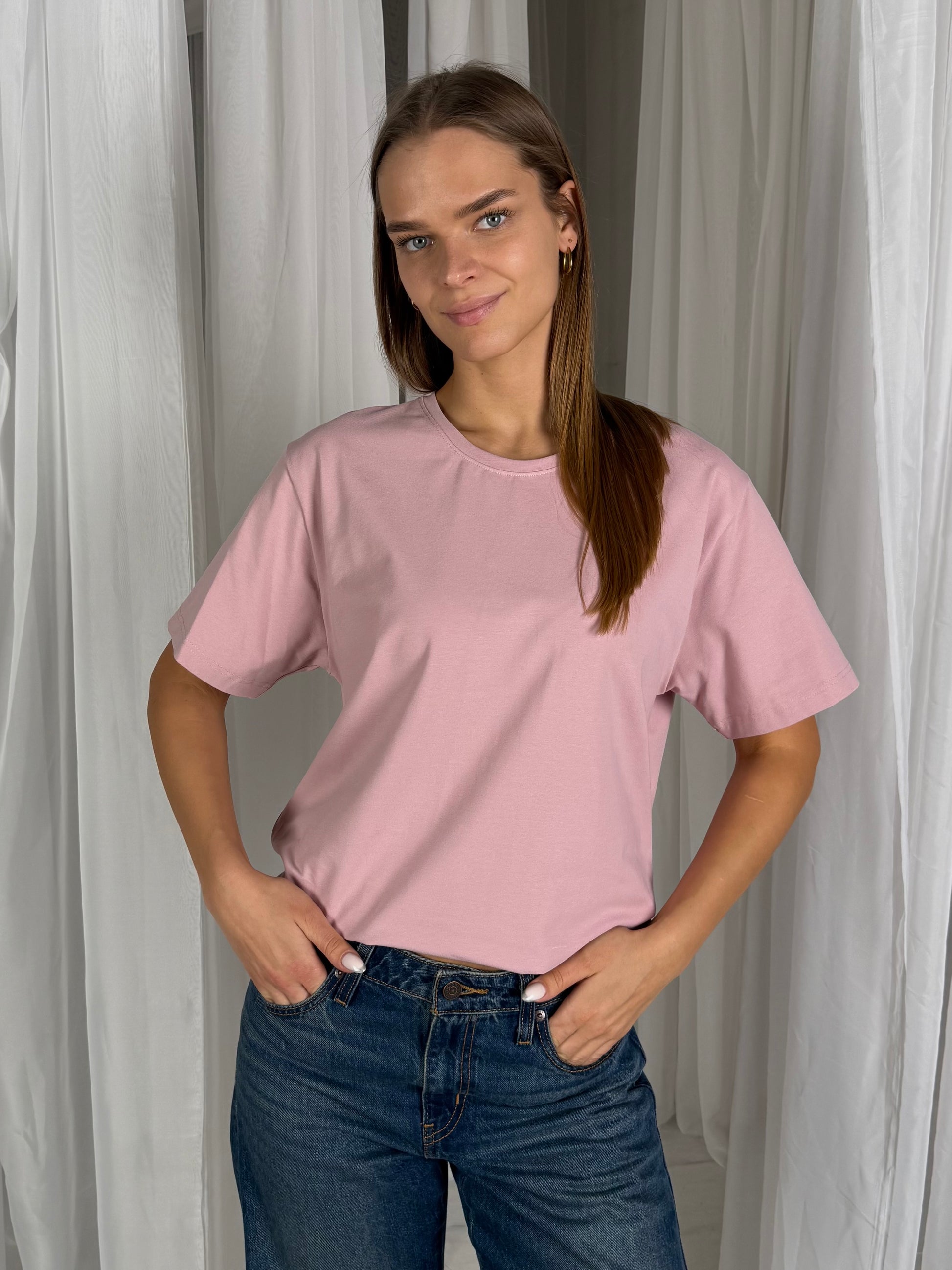 Basic marškinėliai yra oversize modelio, laisvo kritimo, pailginti. Tekstilė naudojama ne paprasta - tokios paprastai parduotuvėje nerasi. Ji tvirtesnė nei esame pratę, todėl nepraranda formos, neišsitąso, nenusiskalbia.