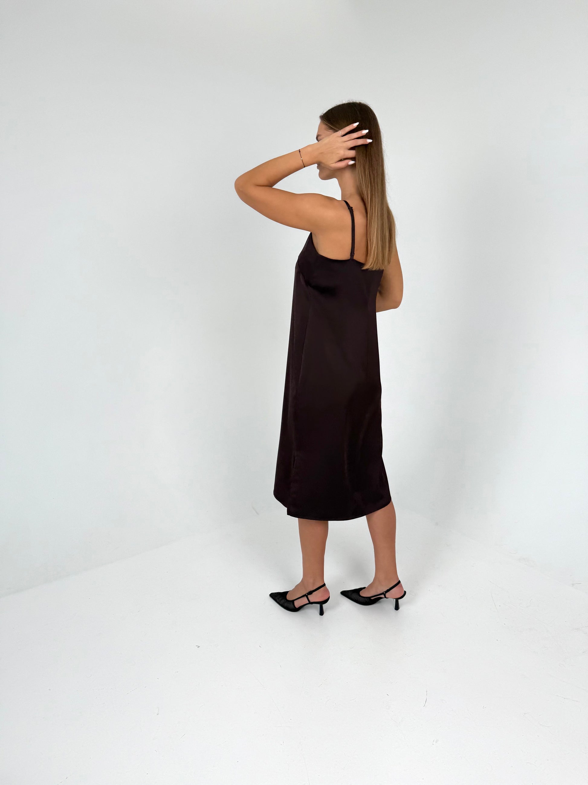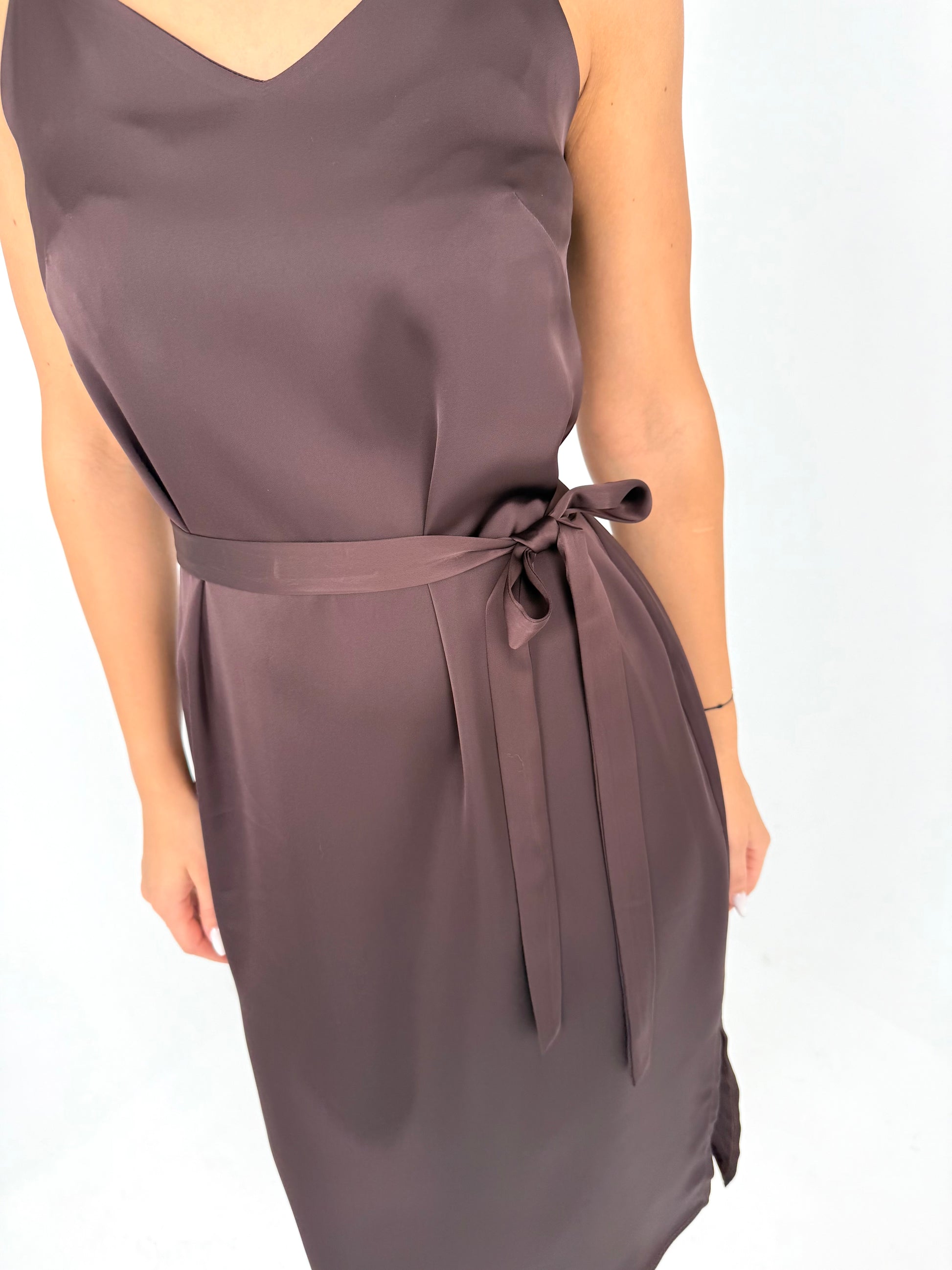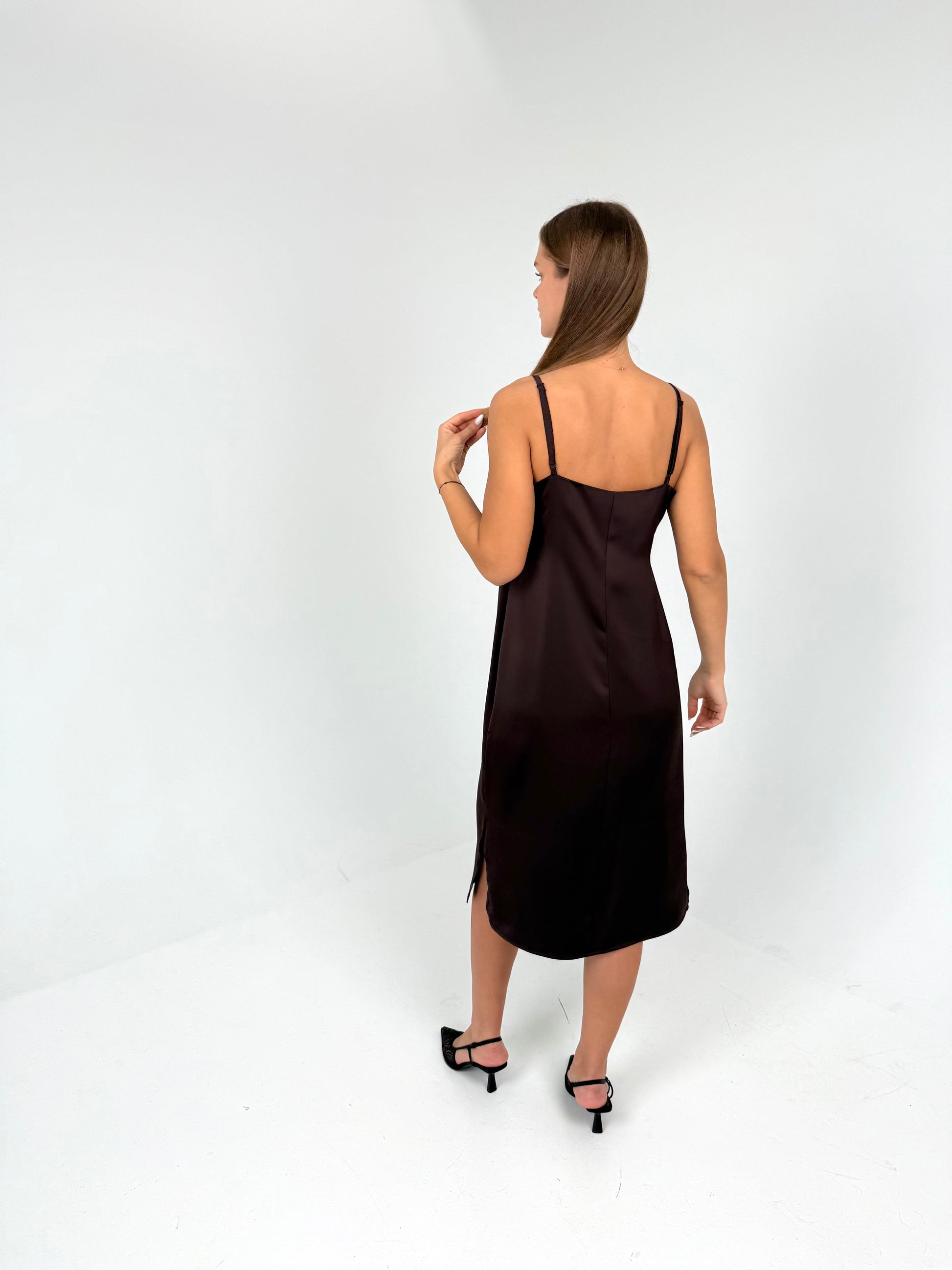 SLIP suknelė ant petnešėlių. Šokoladas
