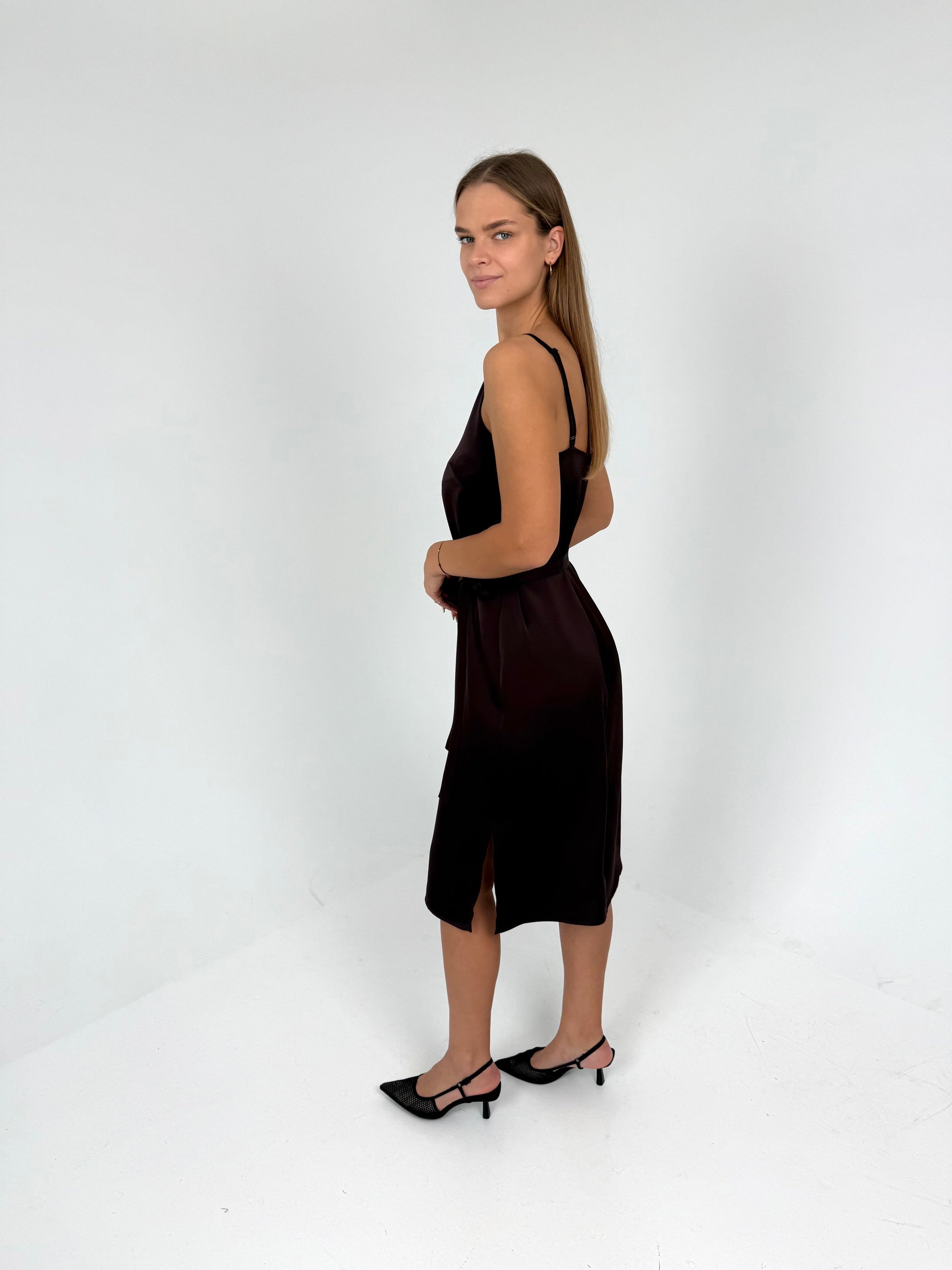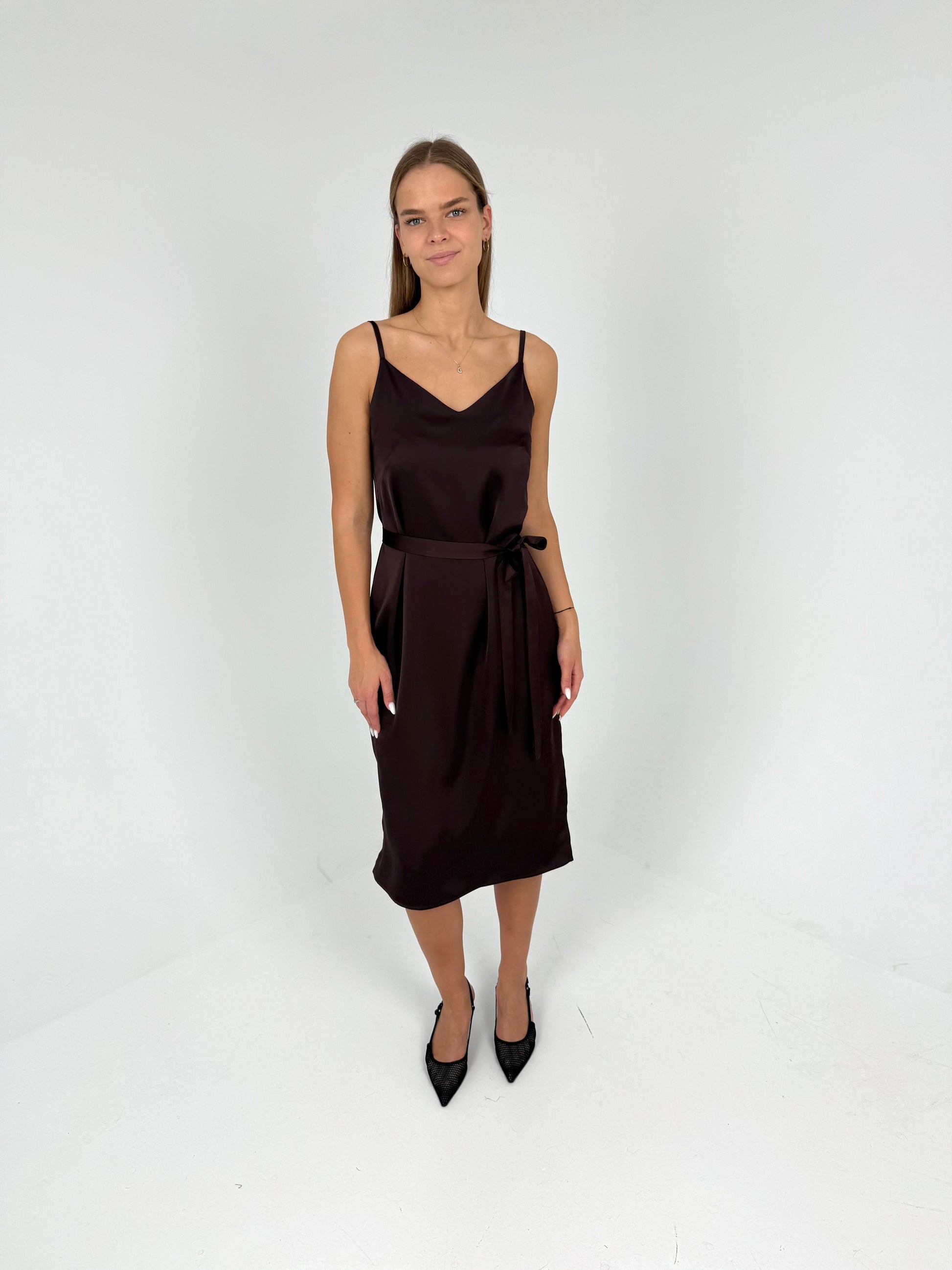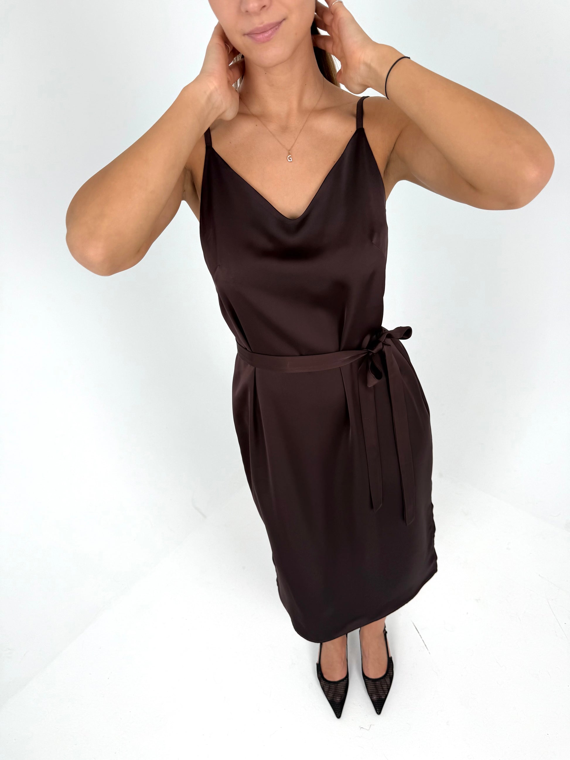 SLIP suknelė ant petnešėlių. Šokoladas