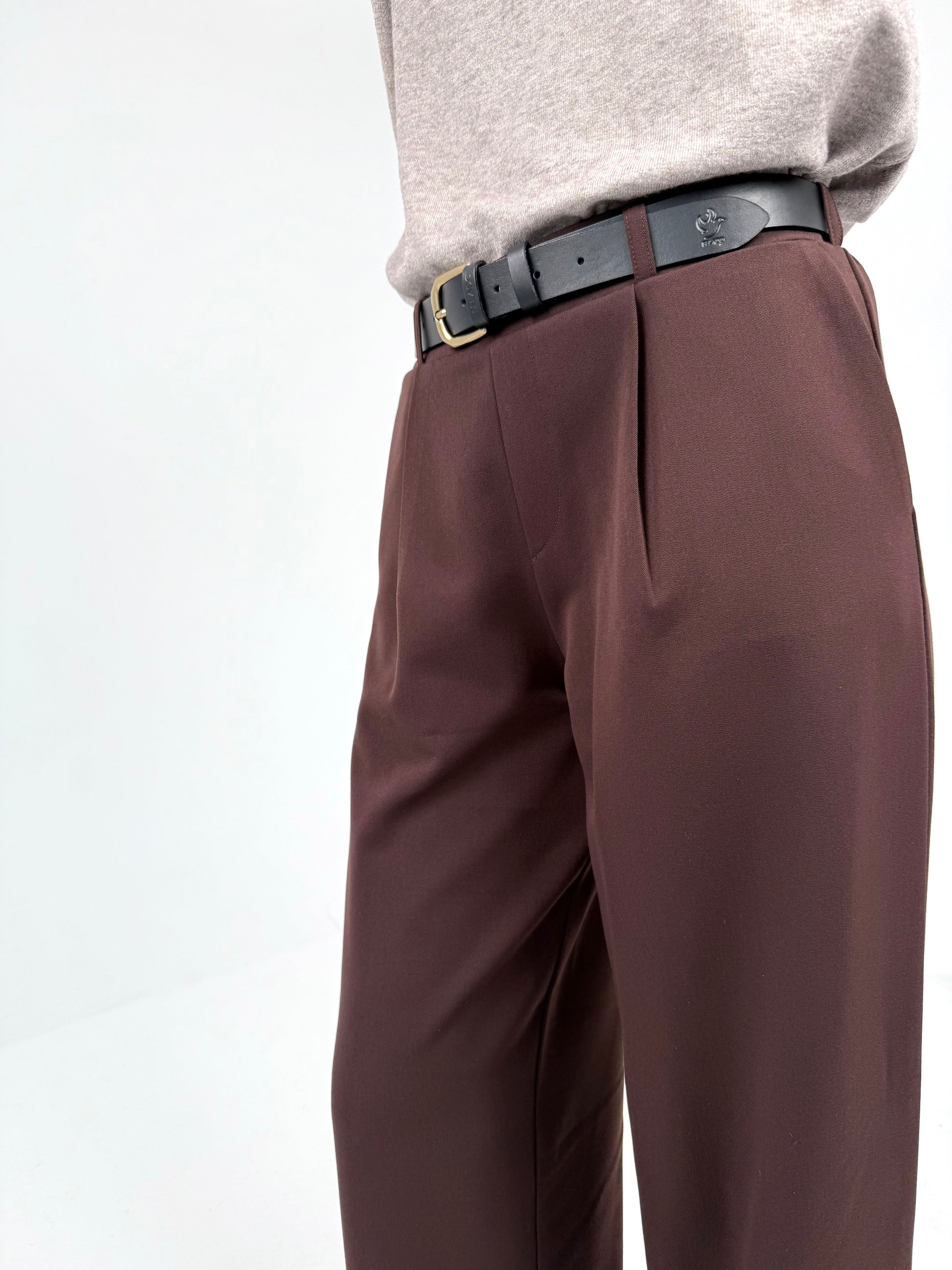 Storesnės MEGA laisvo kritimo kelnės. Šokoladas