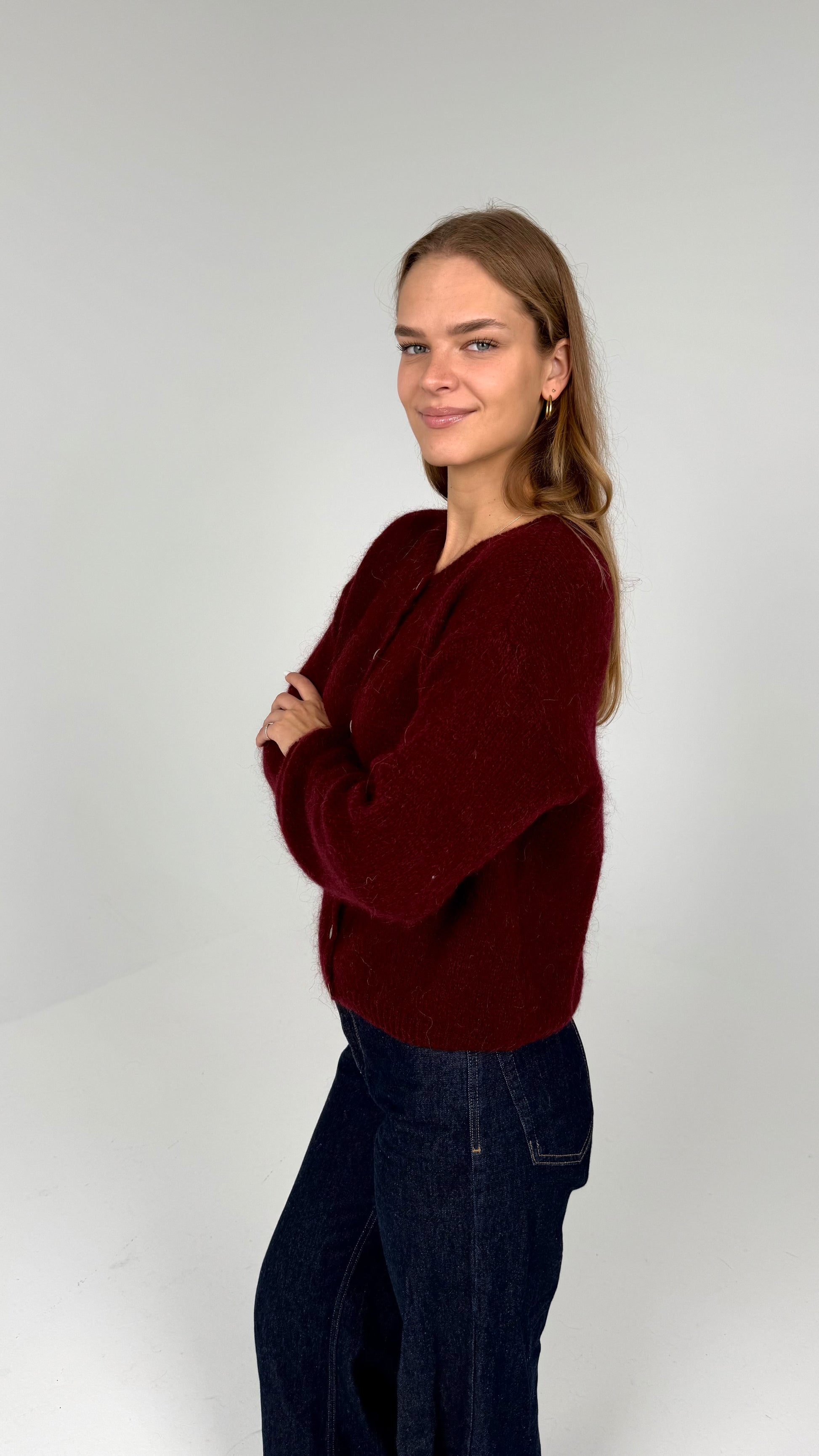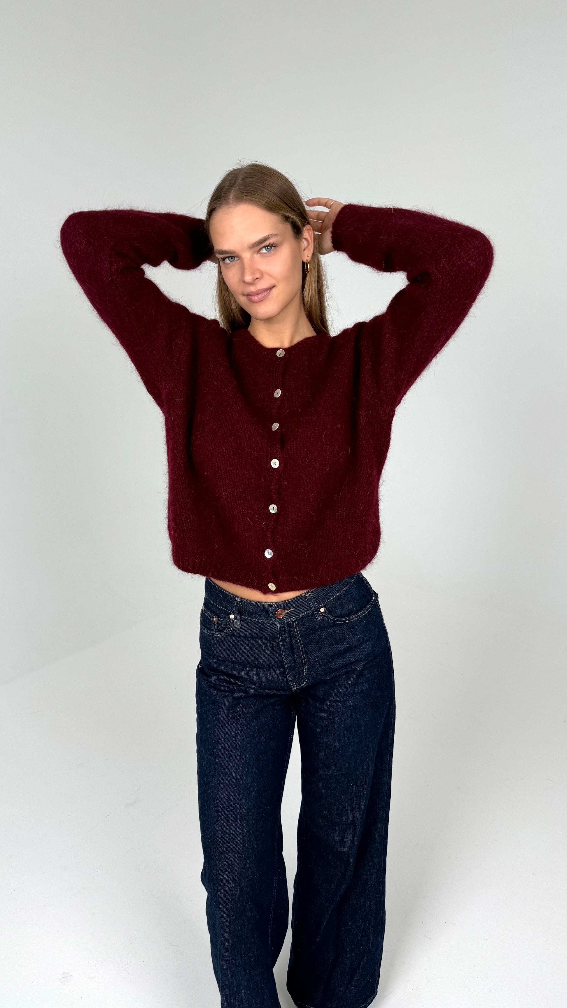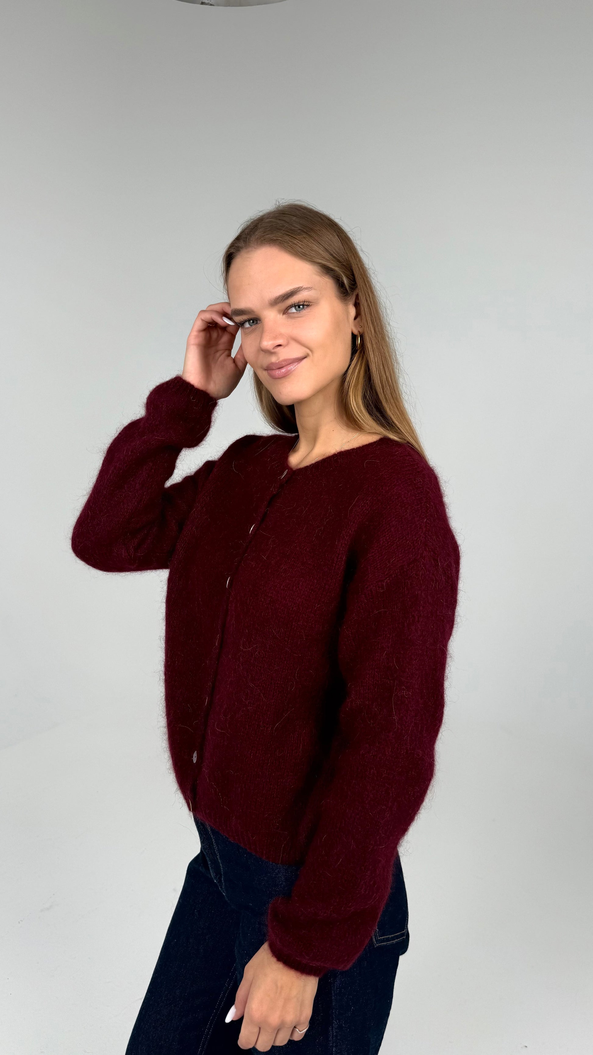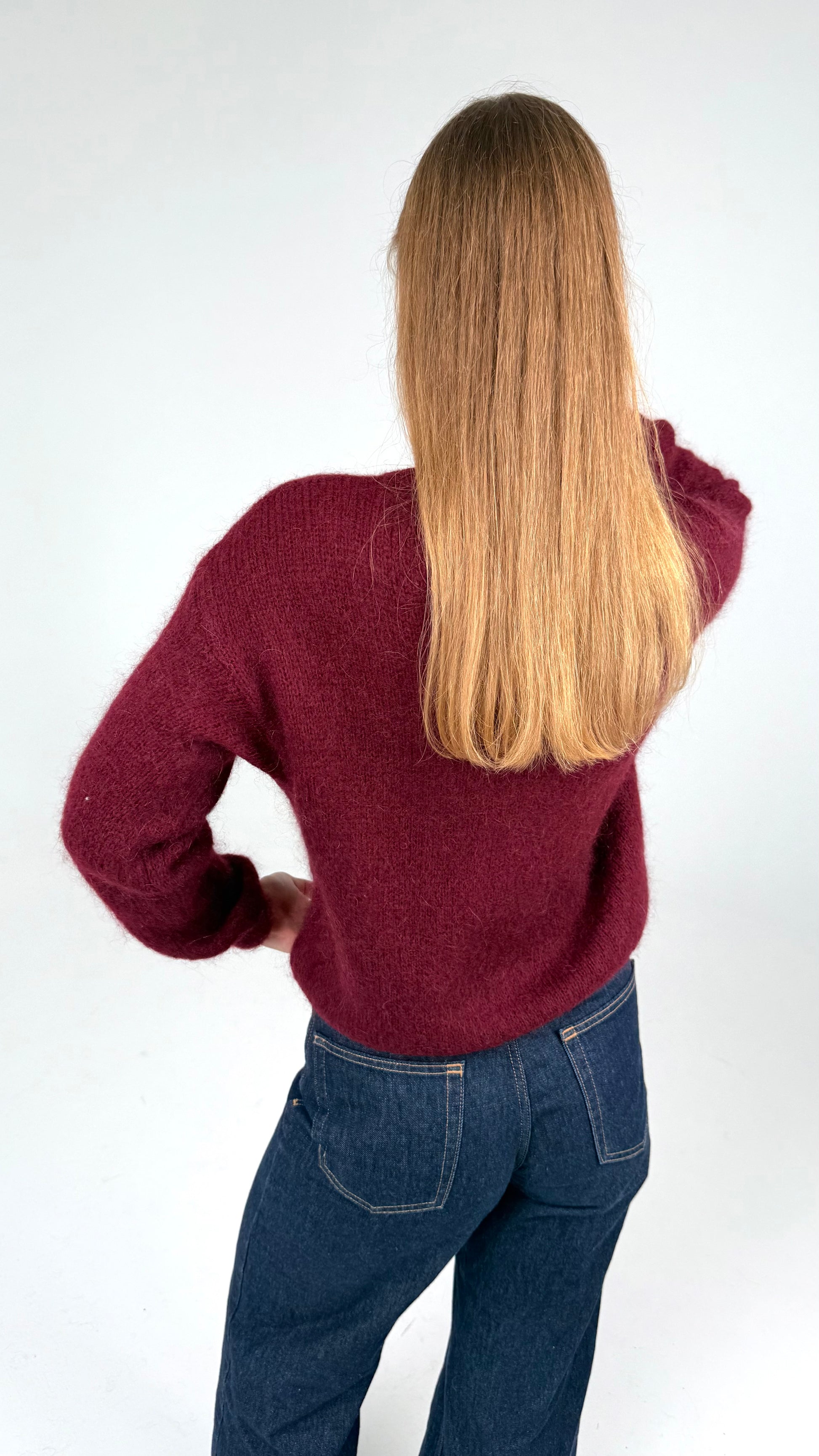 Susegamas moheros ir vilnos megztukas. Bordo