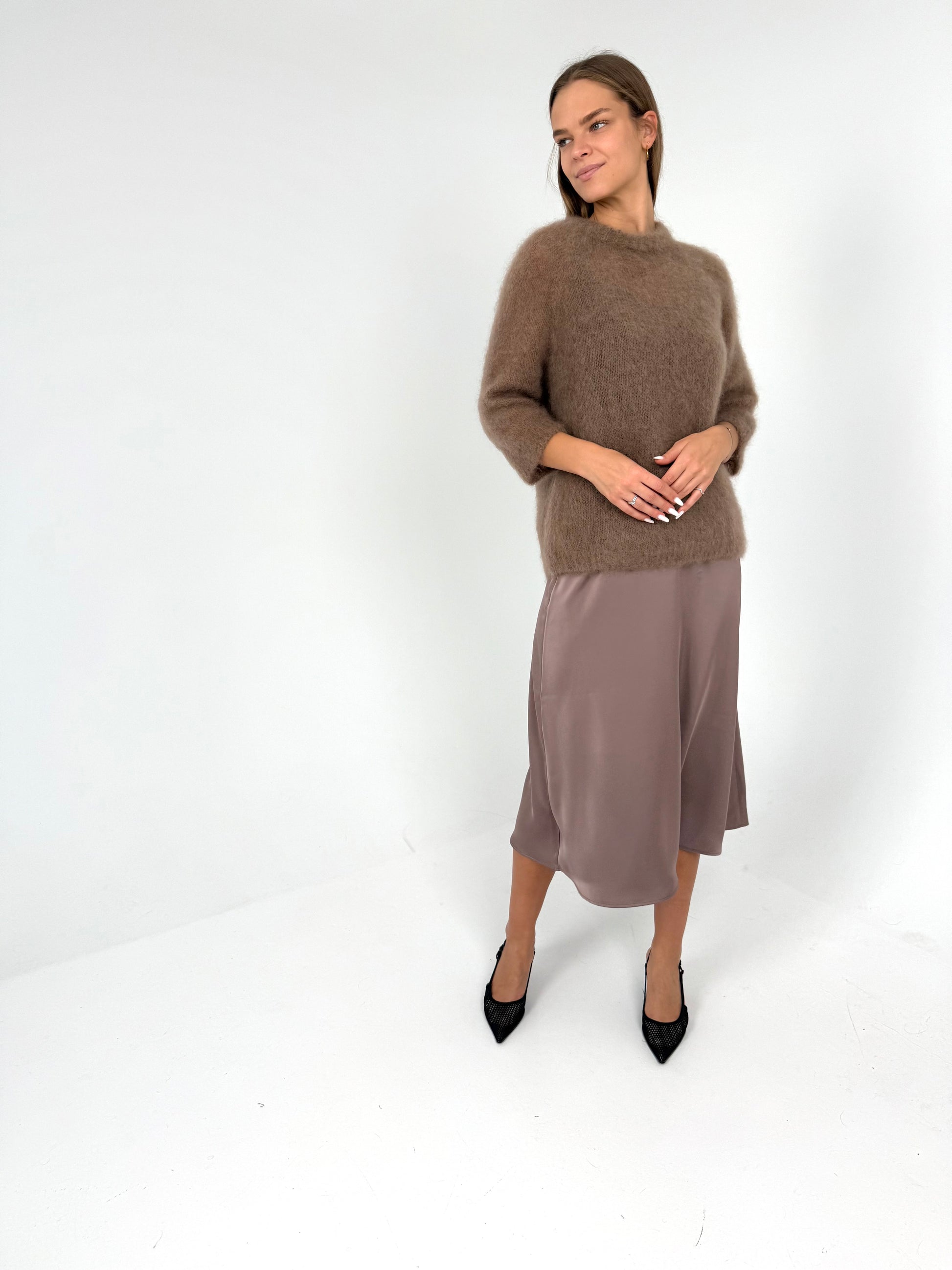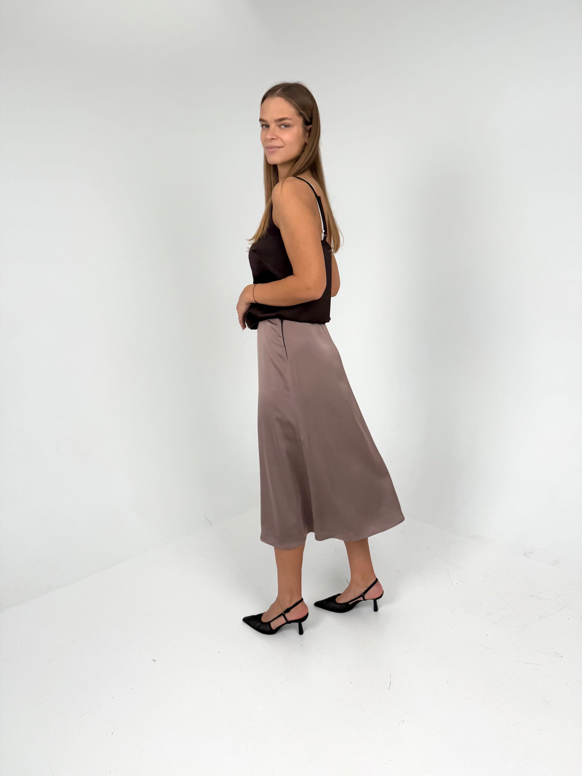 Sijonas praktiškas,dengia kelius, yra lengvai derinamas prie tavo jau turimų drabužių. Ties juosmeniu guma - suteikia patogumo jausmą, nevaržo. Šone yra užtrauktukas.