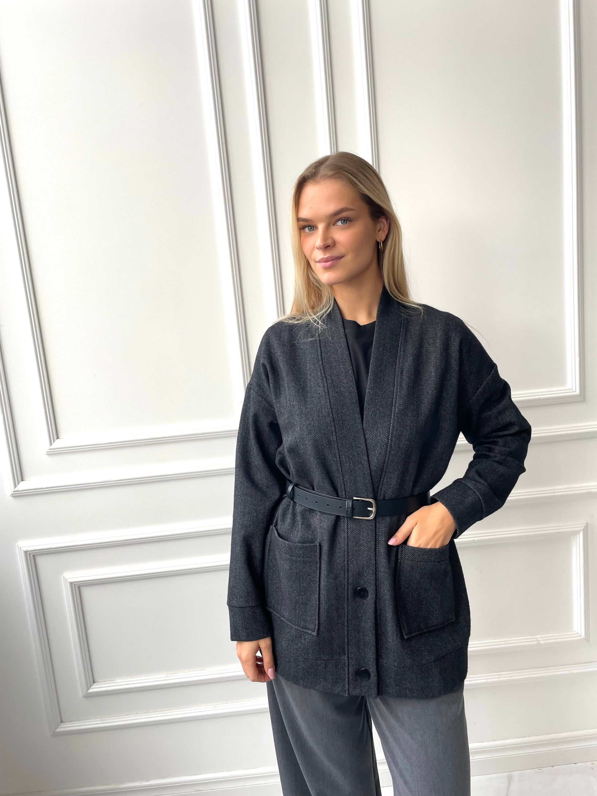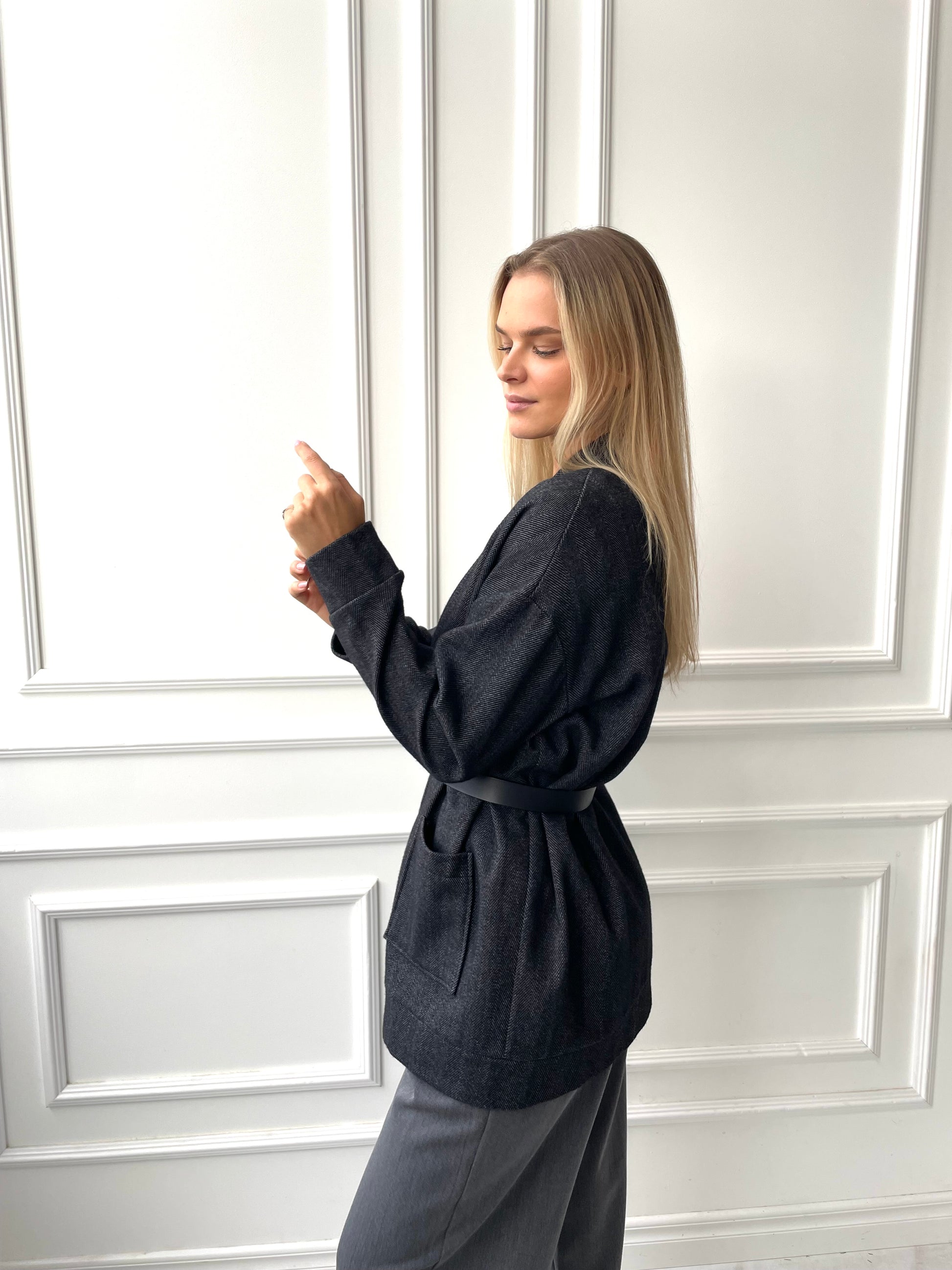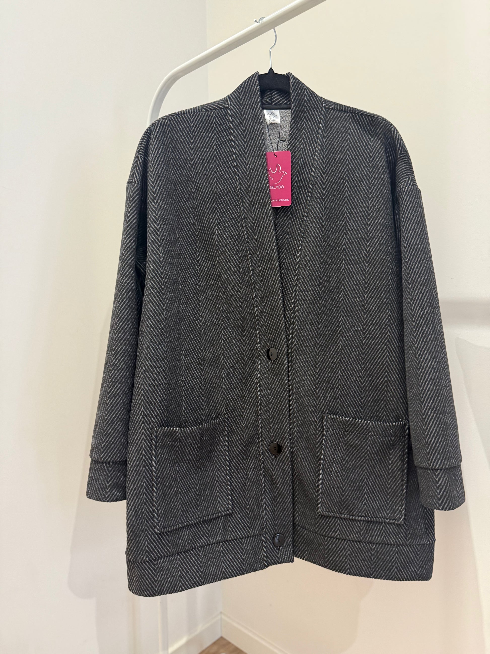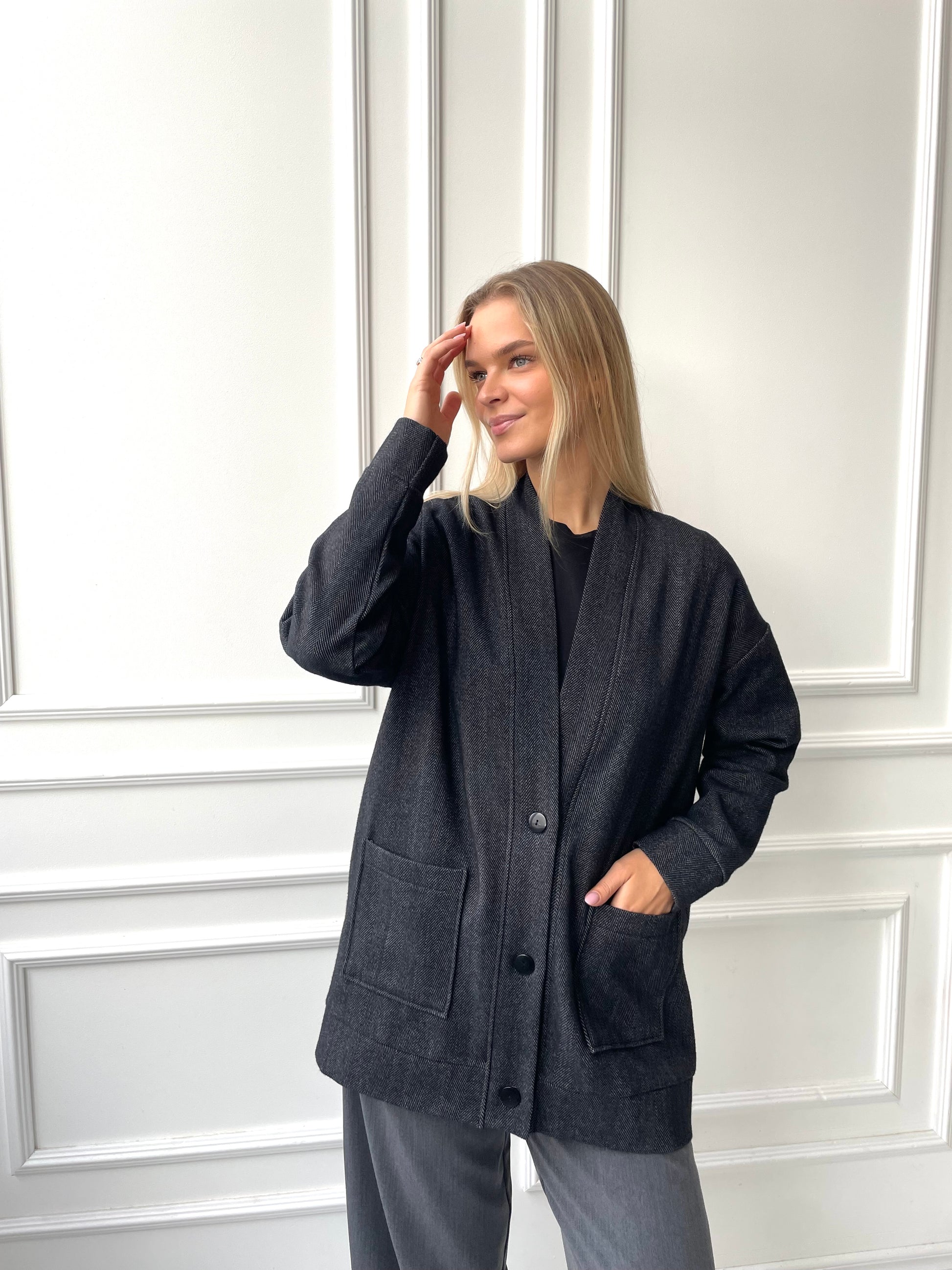 Laisvo kritimo švarkas/kardiganas. Juoda eglutė